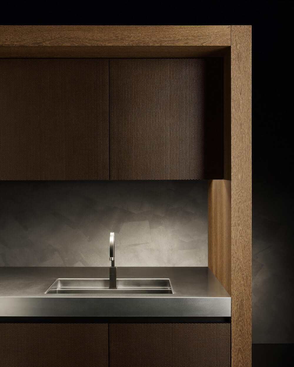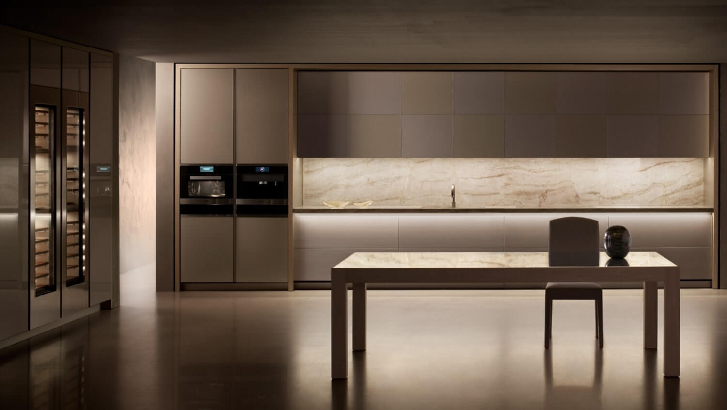 With Armani/Dada, the elegance of the stylist arrives into the kitchen. The functionality that has always characterized Dada embraces valuable materials and fine marbles to bring to the core room of the house refinement and sobriety; lines and volumes are minimized, hiding behind their elegance an unparalleled functionality. All the Armani/Dada collections represent the best of the modern luxury kitchen, a highly practical but also enjoyable cooking space where you can amuse and relax yourself in good company. The colours are the warm ones typical of the natural finishing, while the lines are clear-cut and minimal for a cosy atmosphere; everything in these kitchens reminds of Giorgio Armani’s distinctive style.