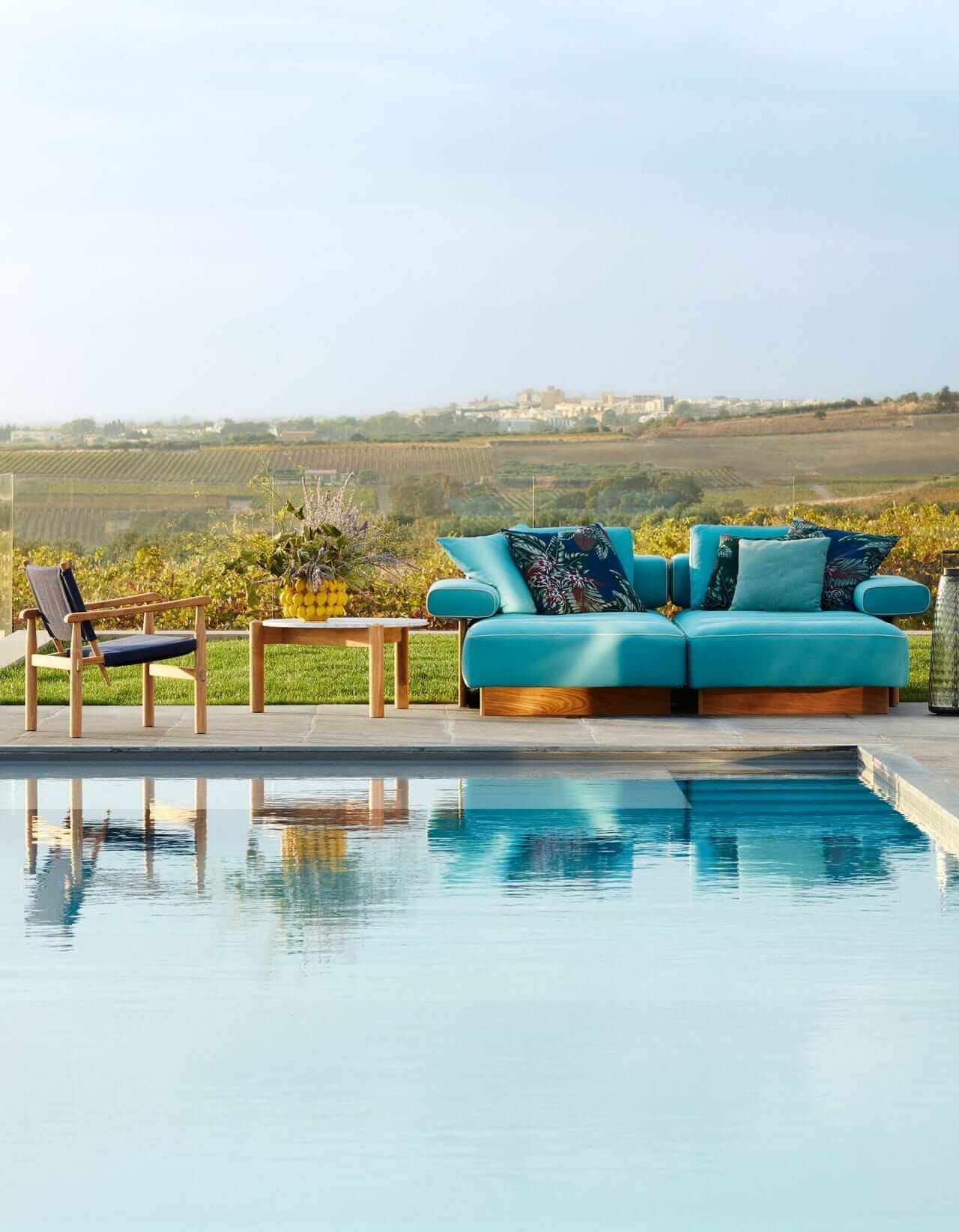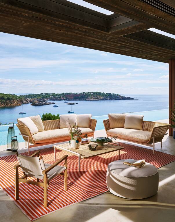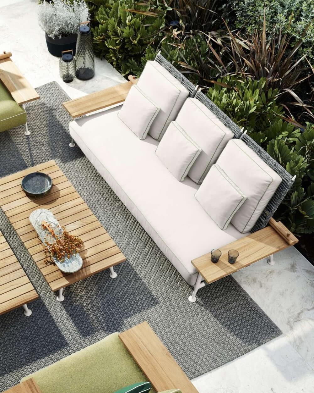 Fenc-e Nature is a collection of outdoor furniture designed by Philippe Starck for Cassina. Defined by Starck as a “lifestyle collection of laid-back elegance”, Fenc-e Nature includes an armchair, a two-seater sofa, a three-seater sofa and a coffee table available in two different heights. Starck celebrates harmony and osmosis with nature through this collection inspired by and extremely respectful of its environment. The selection of the most natural materials and high quality create a durable and timeless collection. The Fenc-e Nature seating collection is characterized by organic, almost primitive, forms and tactile elements. “With the Fenc-e Nature, I created something that doesn’t exist; something between daily DIY and Duchamp’s Ready Made. It doesn’t seem to come out of a factory, and brings humanity, charm, poetry, creativity and Nature to your home.” Philippe Starck Finely tailored details ensure maximum comfort. Versatile and functional, Sail Out offers an endless variety of combinations, thanks to three sections per seat and three coordinated elements: the teak table and the armrest-backrest.