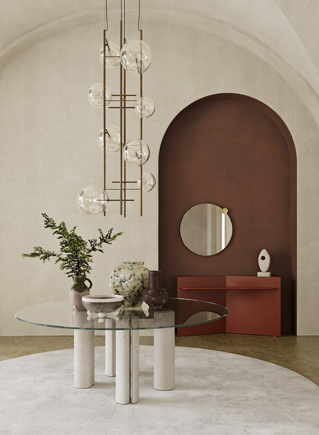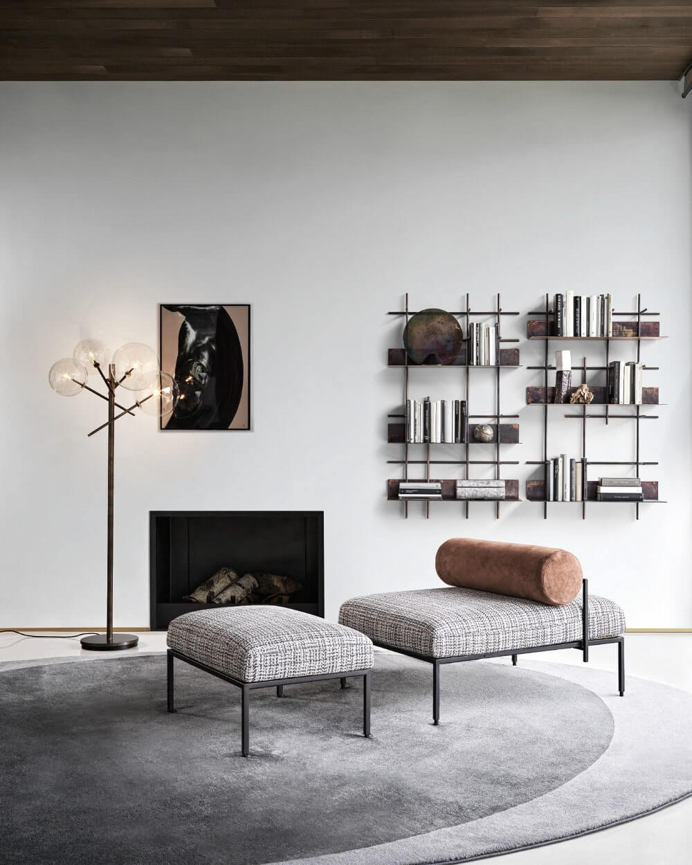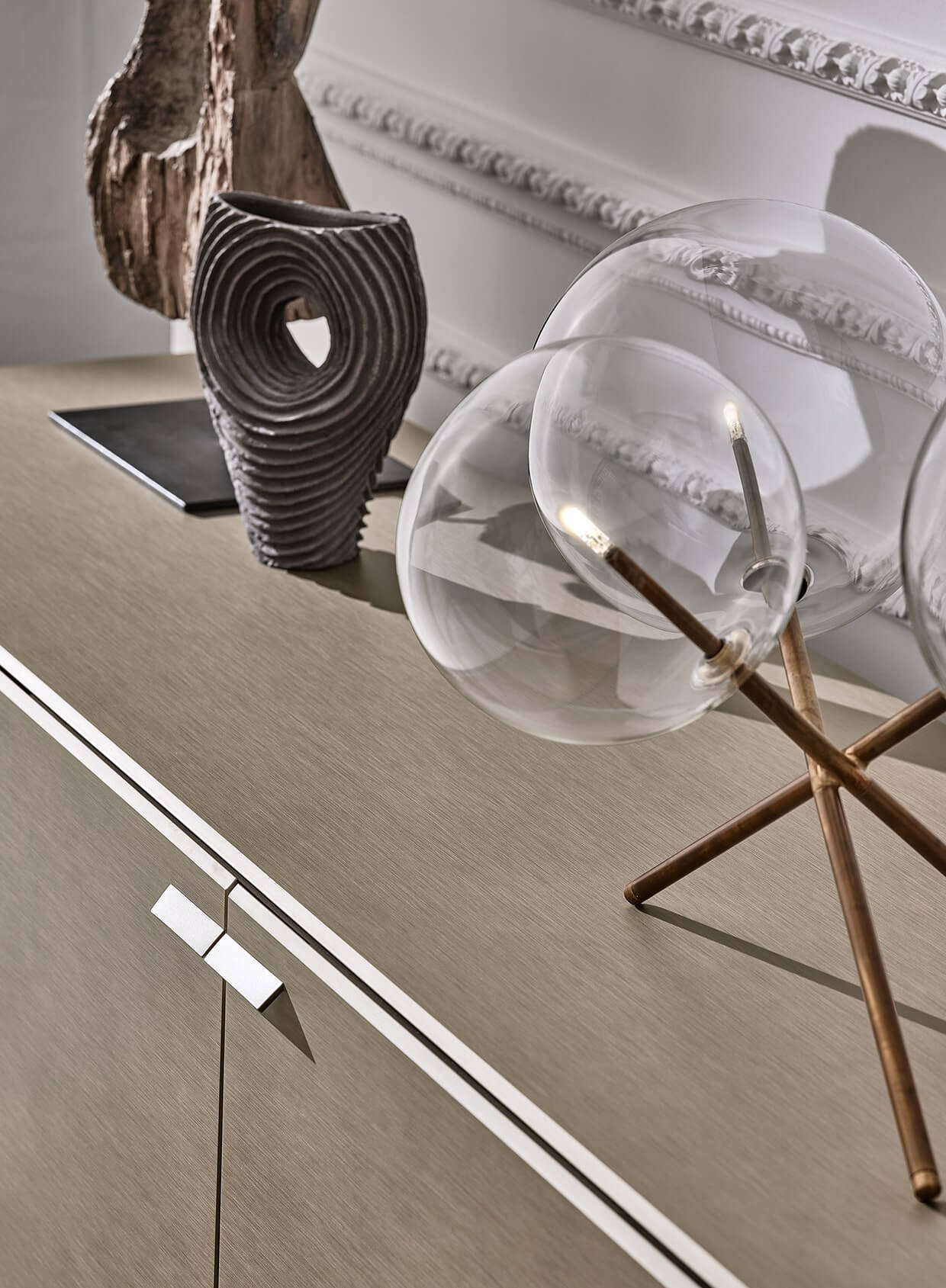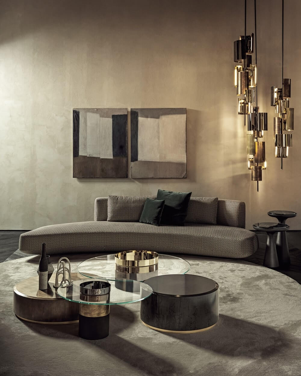 Creating a presence as powerful as the shapes themselves are delicate. Hand burnished brass, crafted to appear naturally worn and spotted, add a touch of warmth, while giving each piece a unique, exclusive air.