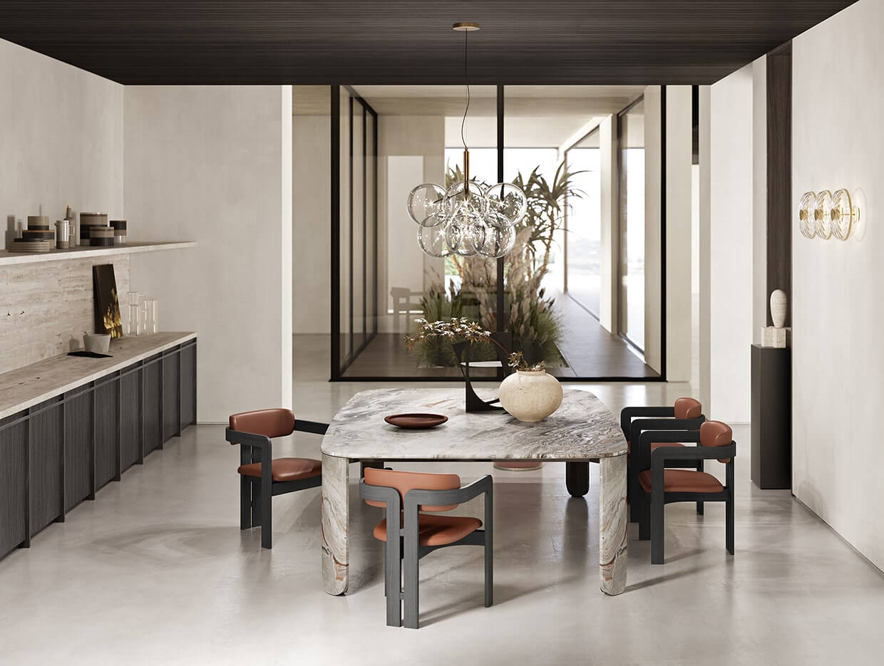 Rigorous lines, clean cuts, pure shapes draw design objects that recall architectures.Tables, chairs and complements that can dress any type of space, thanks to an essential and unmistakable personality.