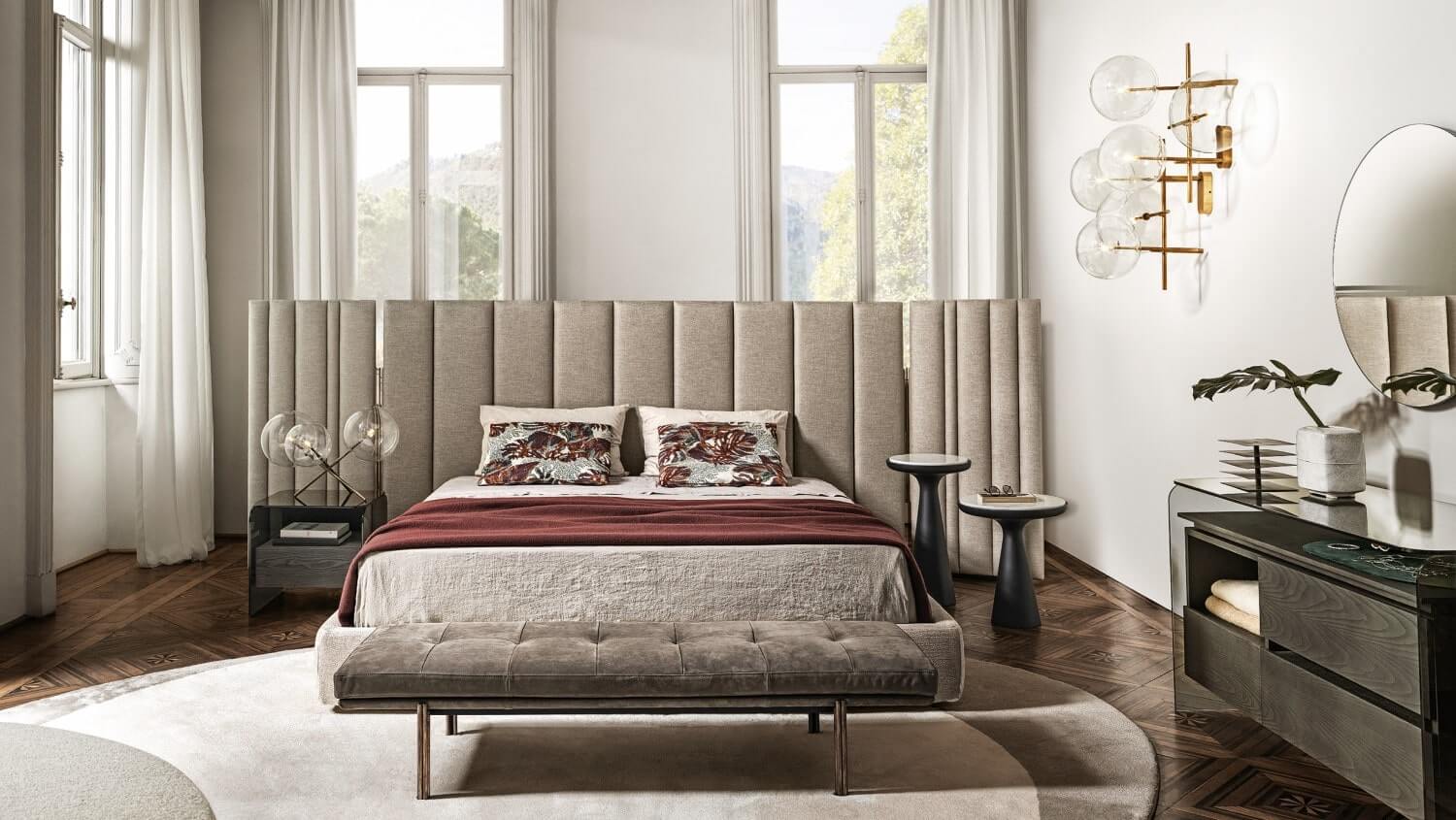 The Gallotti&Radice bedroom areas is an essential and sophisticated minimalism of the interiors maximizes the expressive value of the area(or furniture), the meticuous attention to detail embraces both space and objects together in a unique concept of living, refined and comfortable.