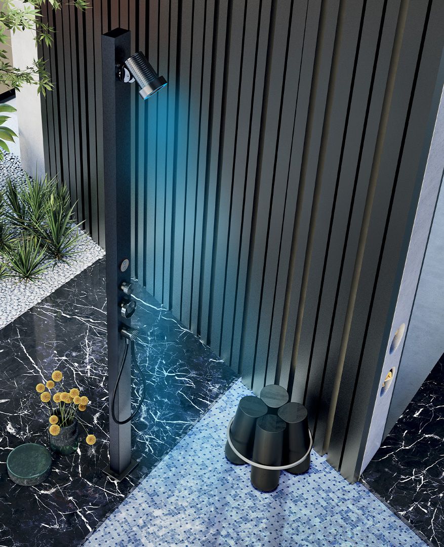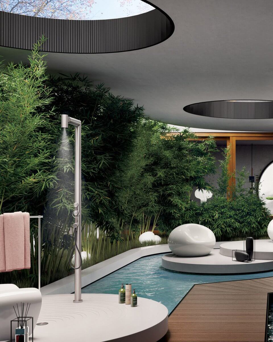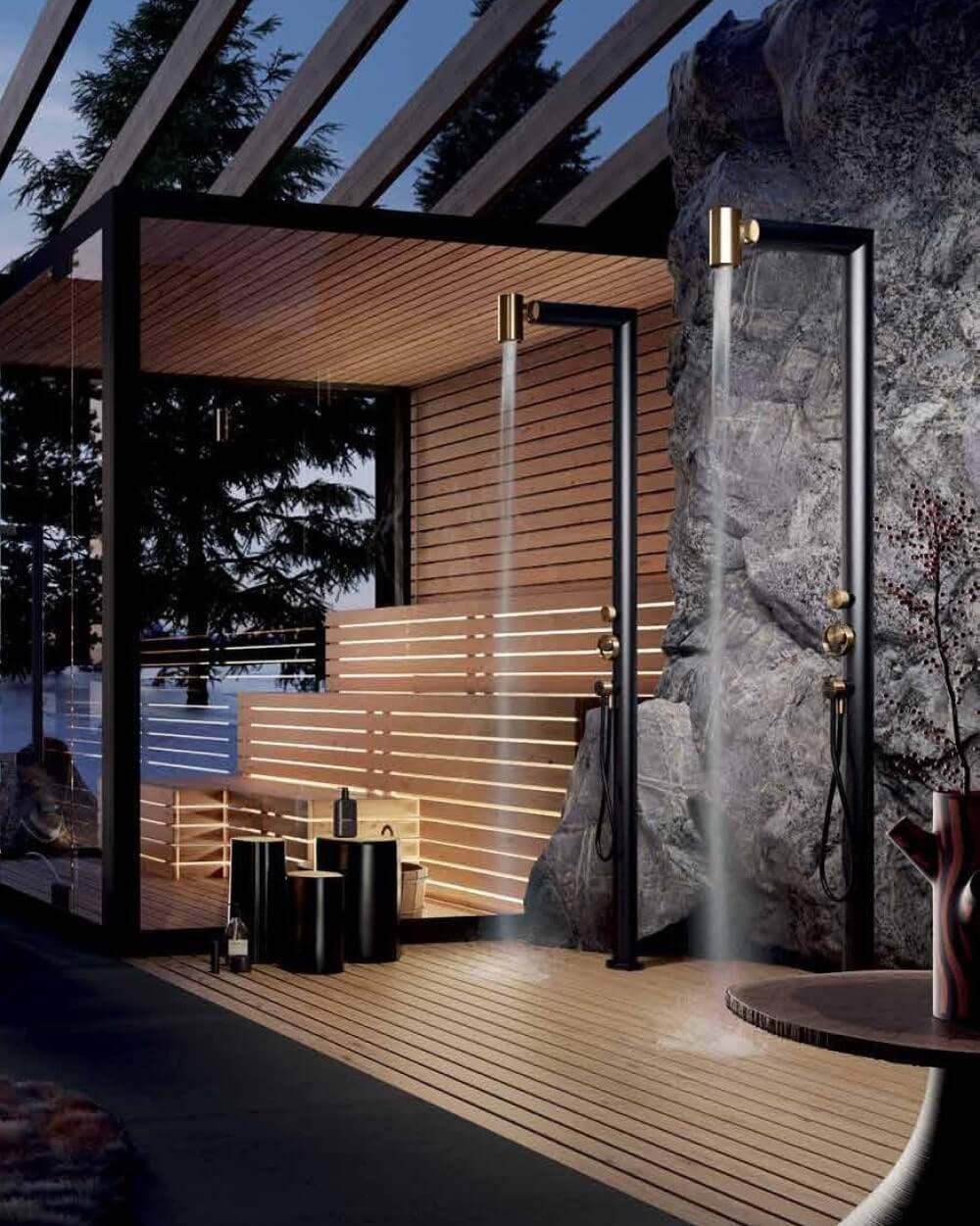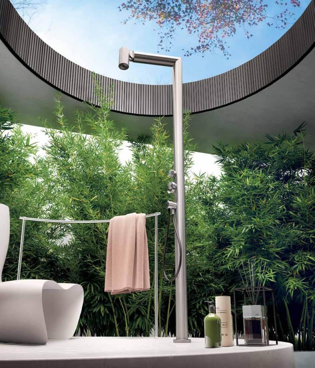 Gessi’s experience in the creation of avant-garde shower systems, enhances these emotions through superior technology and style, transforming the outdoor shower into an object of Outdoor Wellness.