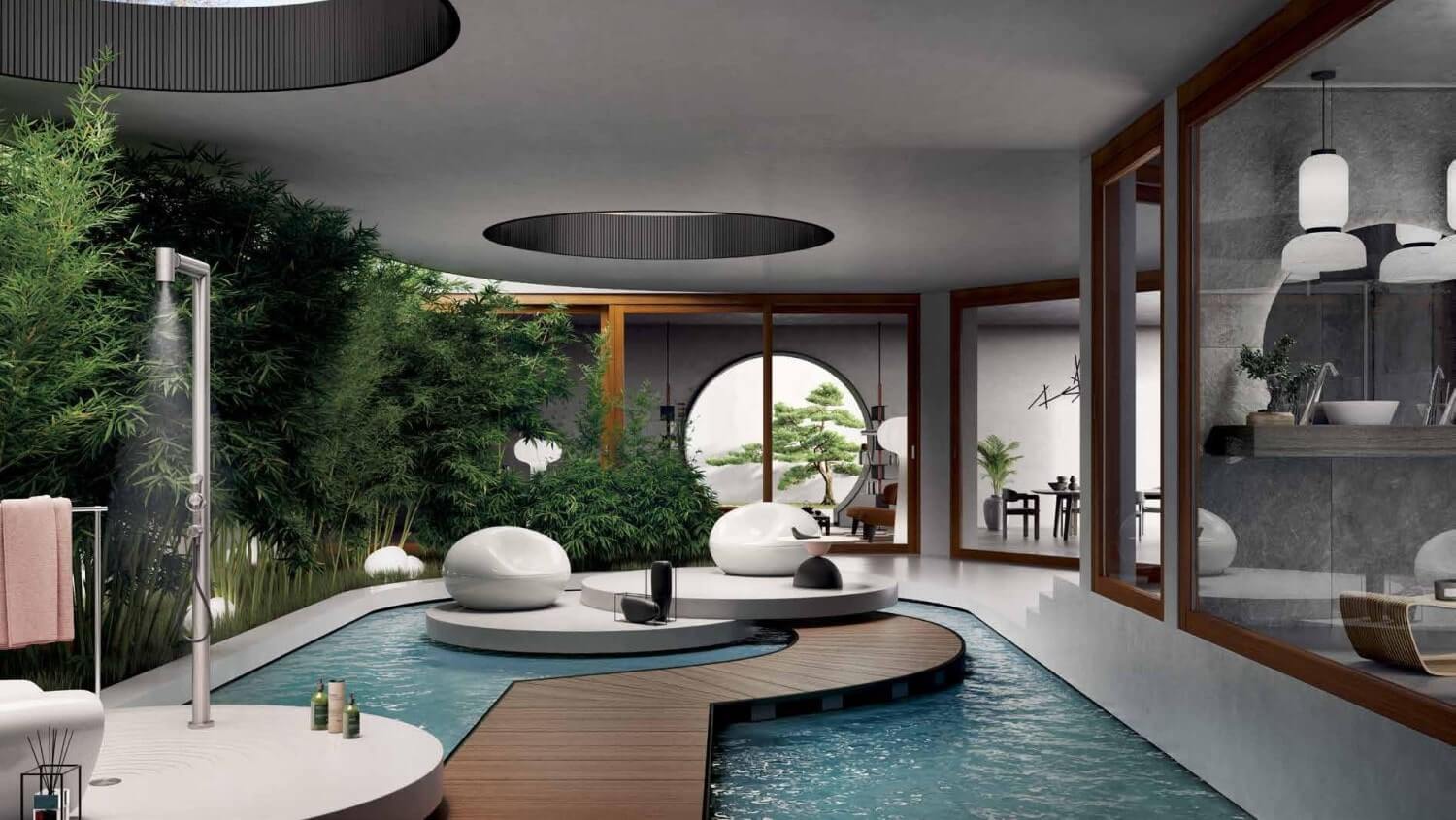 The refined and delicate lines of the Gessi Outdoor Collections seem to naturally belong to the landscape, while the combination of ambience and design elevates the space giving to the outdoors elements the charm of the most sophisticated interior design.