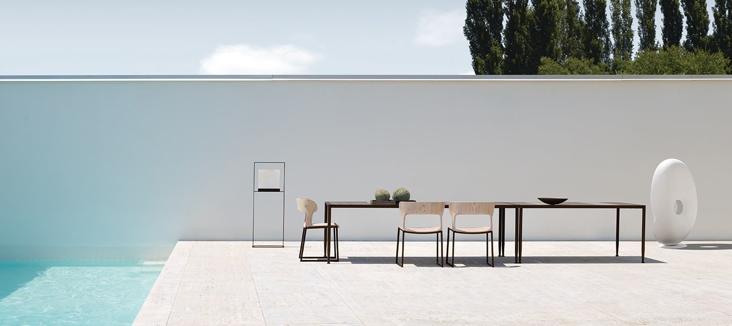 The typical elegance of interiors, made up of research into details, design of shapes, precious materials, conquers the outdoors. Real open-air rooms for an experience of style and maximum comfort: sofas, sun loungers, armchairs and chairs, tables, coffee tables, sunshades and many other accessories for outdoors, gardens, pool sides and terraces.