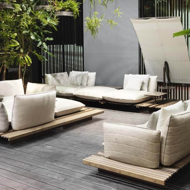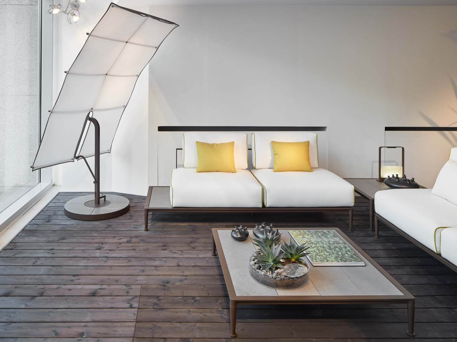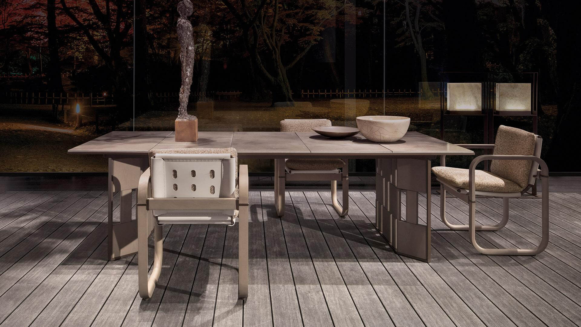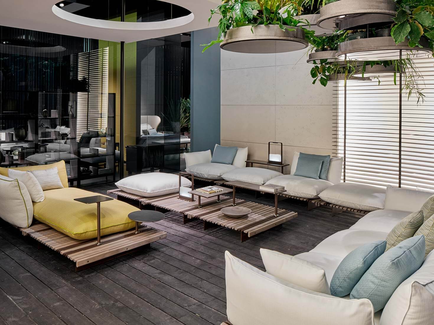 The typical elegance of interiors, made up of research into details, design of shapes, precious materials, conquers the outdoors. Real open-air rooms for an experience of style and maximum comfort: sofas, sun loungers, armchairs and chairs, tables, coffee tables, sunshades and many other accessories for outdoors, gardens, pool sides and terraces.