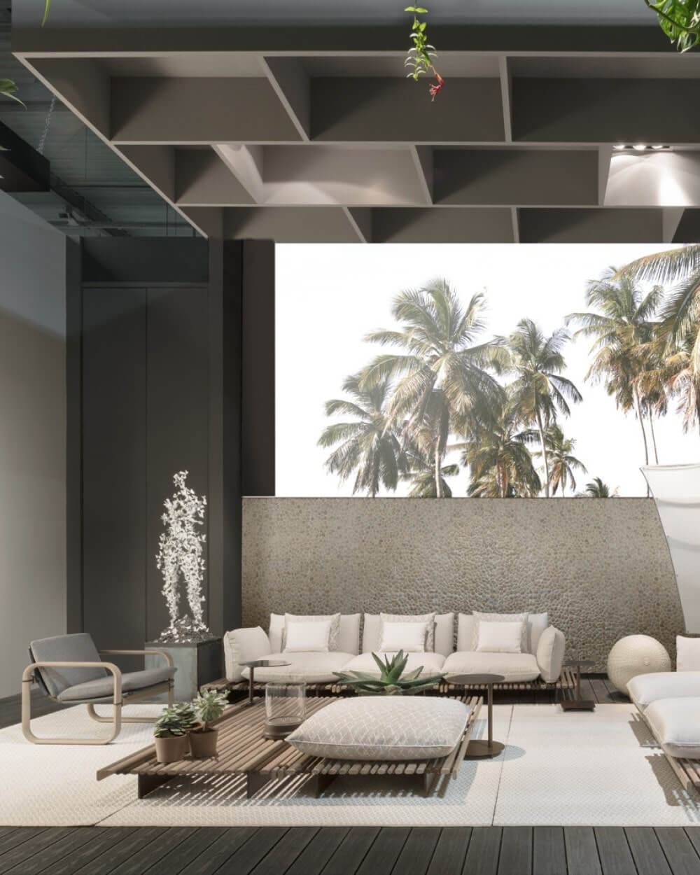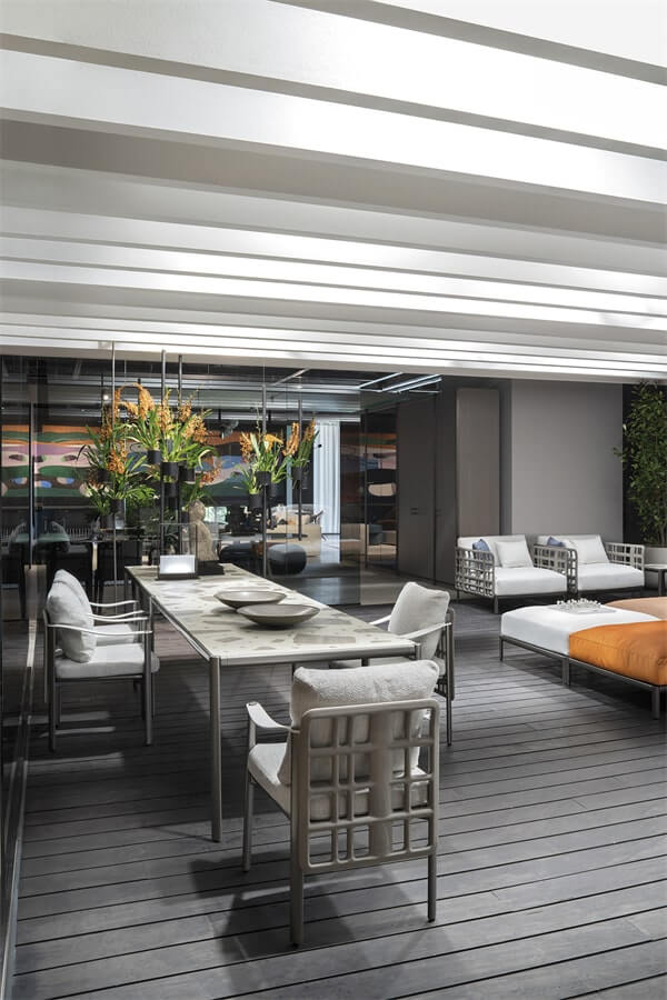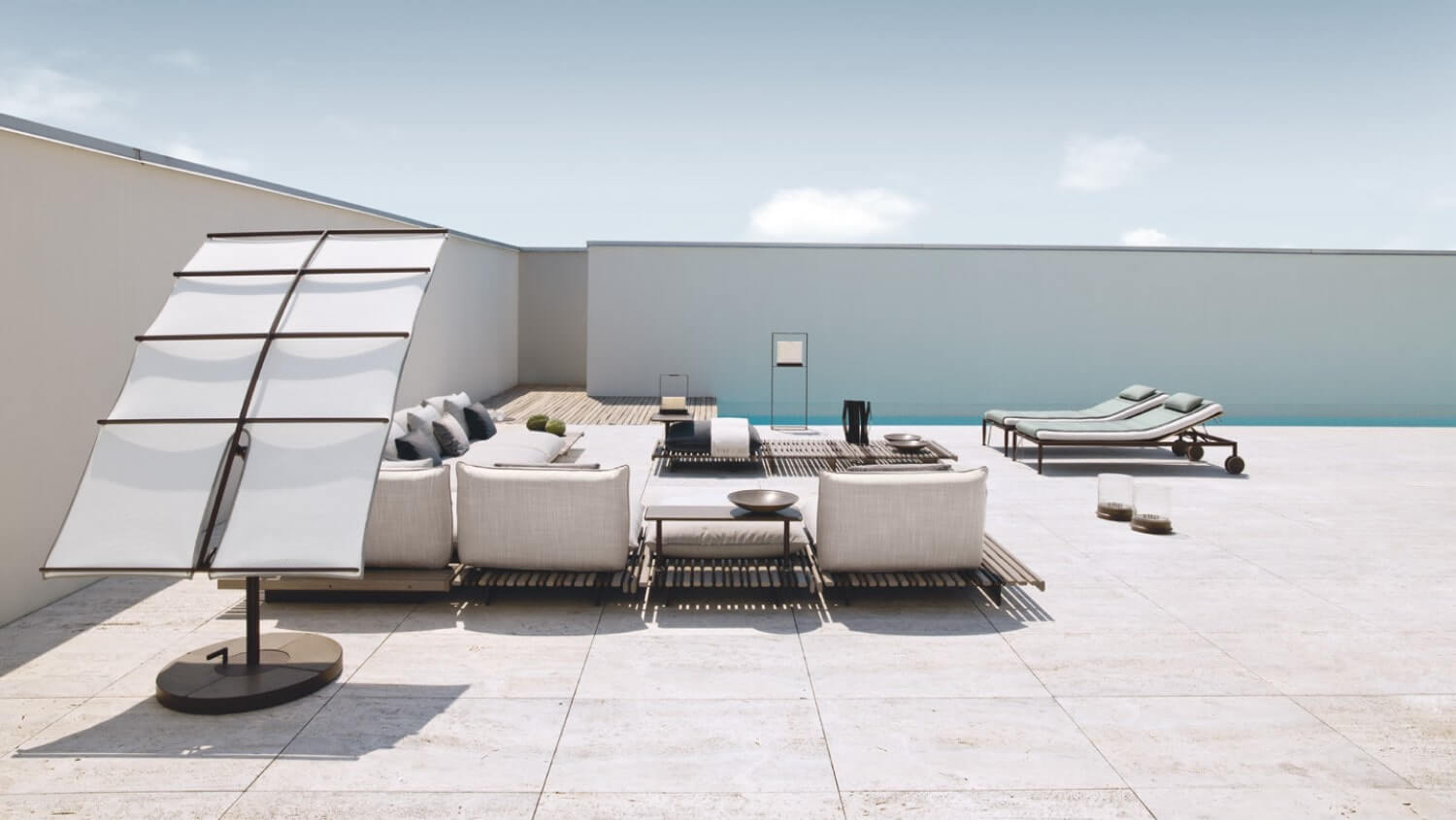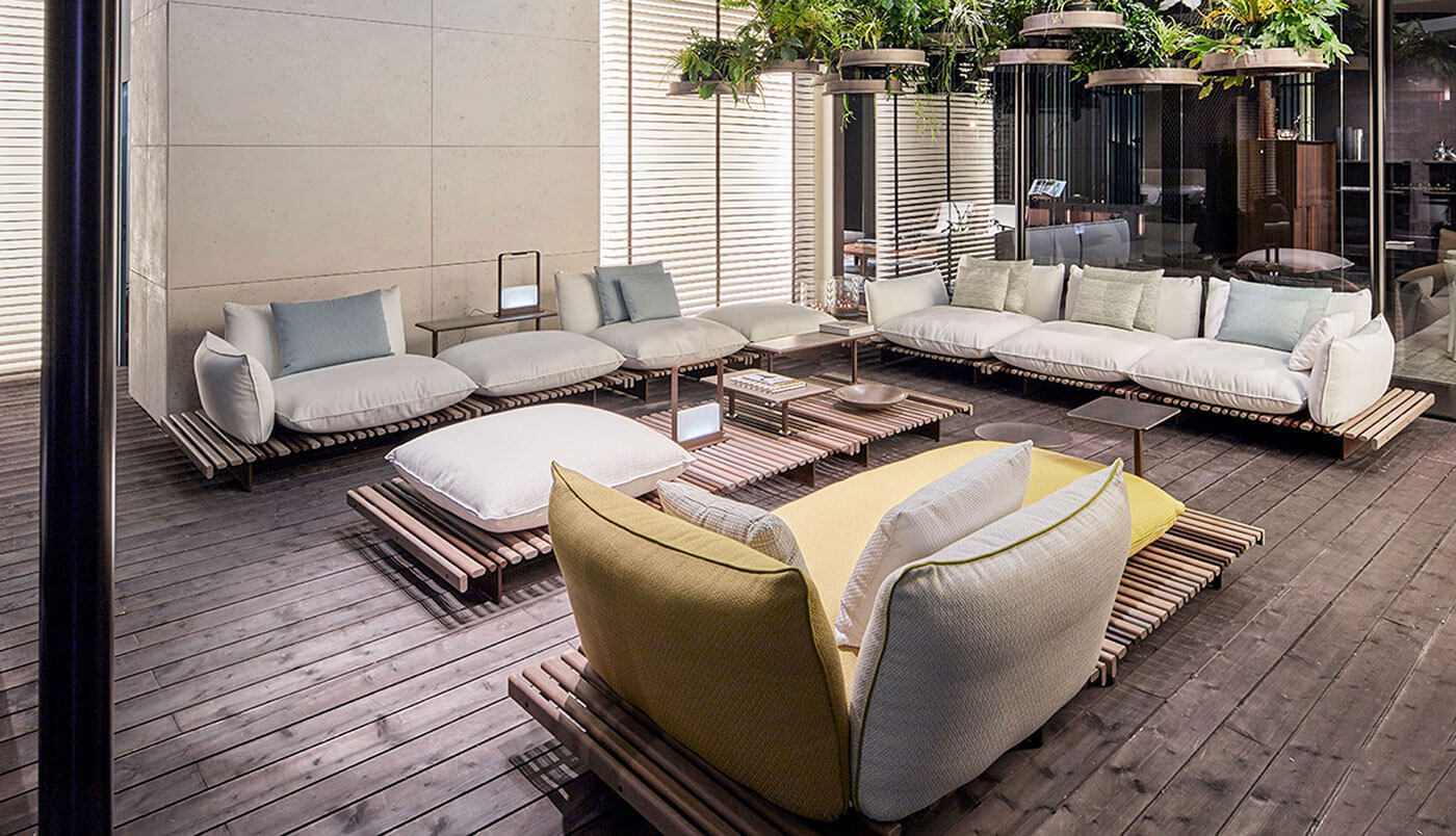 The typical elegance of interiors, made up of research into details, design of shapes, precious materials, conquers the outdoors. Real open-air rooms for an experience of style and maximum comfort: sofas, sun loungers, armchairs and chairs, tables, coffee tables, sunshades and many other accessories for outdoors, gardens, pool sides and terraces.