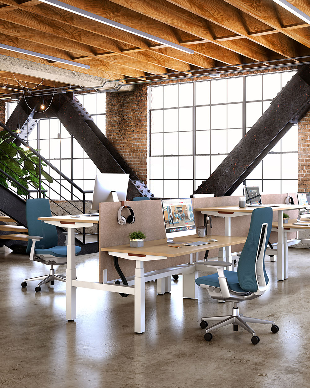Explore workspaces, desks, and benching furniture solutions. Upgrade cubicle desks to a modern office workstation solution with options ranging from private booths to height-adjustable benching.