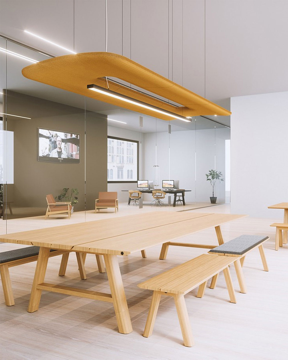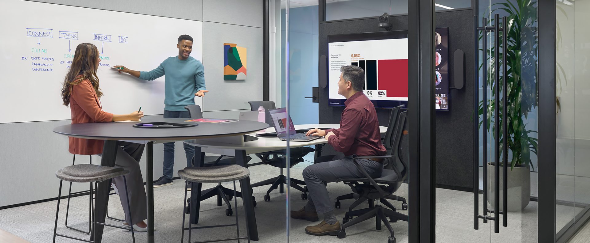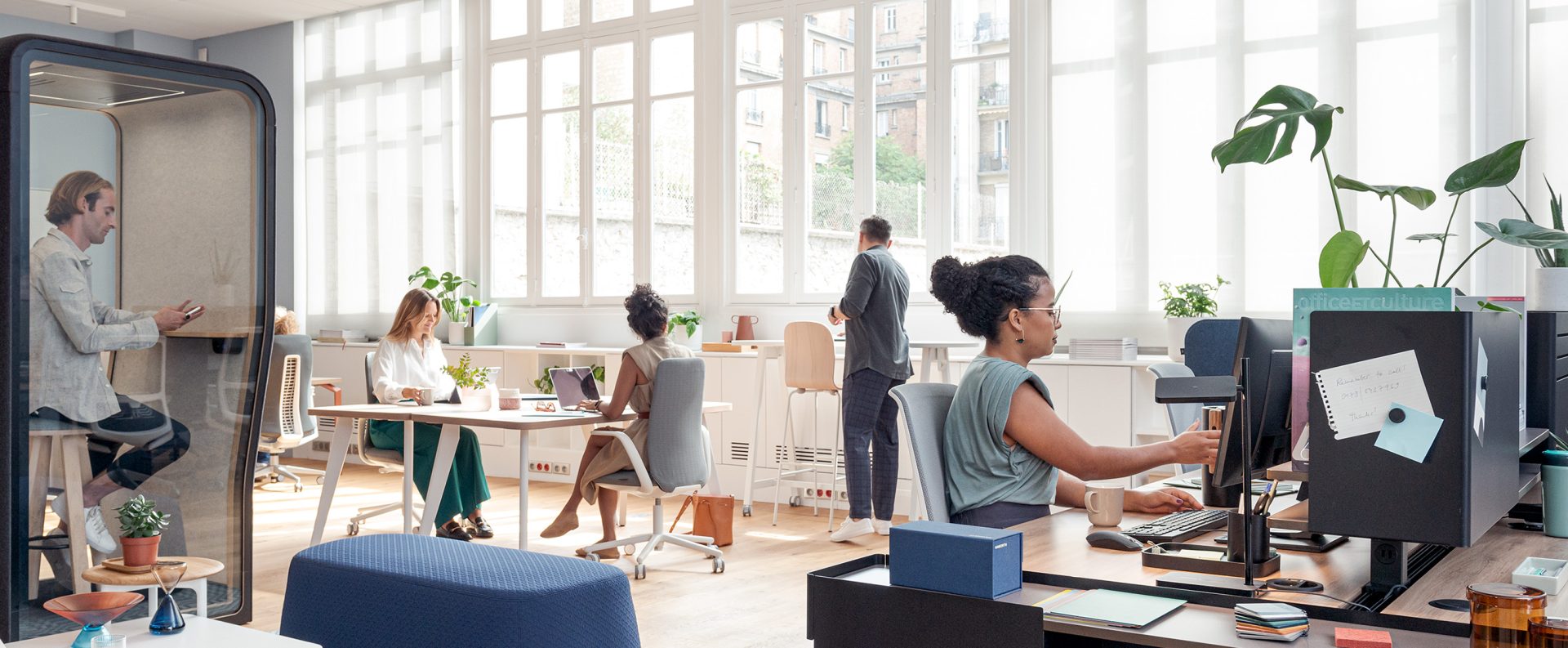 architectural space delineation solutions that allow for configuration (and re-configuration) of private spaces within the office. Moveable walls and freestanding workspaces allow for a range of options without the permanence of construction.