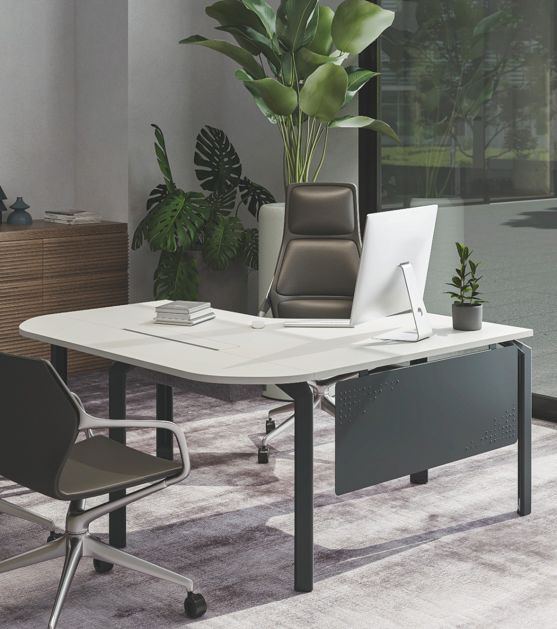Explore accessories to make the office both beautiful and functional - from rugs to lighting options, to technology support and power solutions.