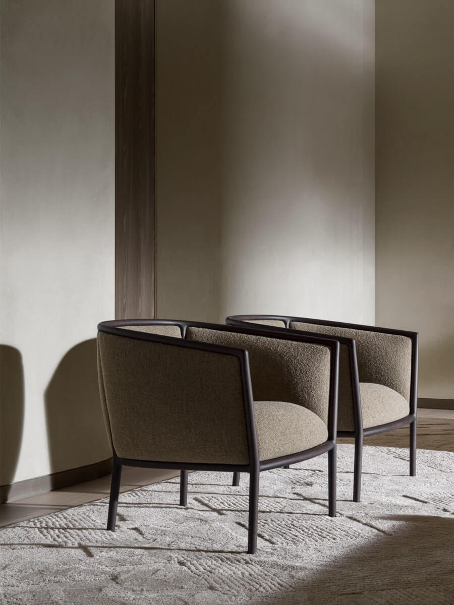 A history-making 1973 design by Afra and Tobia Scarpa for Molteni&C, Monk reemerges in 2025 with this exclusive re-edition. Monk is defined by its pared-down aesthetic that highlights the expressive qualities of leather against solid wood. Eight burnished steel rivets secure the seat to the frame, bringing a subtle decorative accent to this exquisite design.