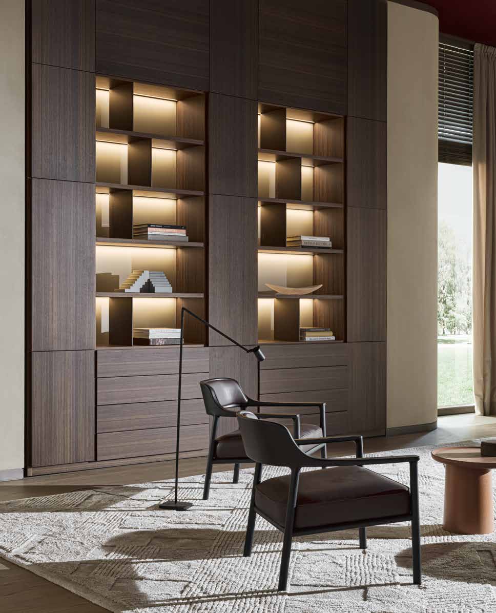 A vast, multifaceted ecosystem of wardrobes, islands, chests of drawers and day or night containers, are customisable to your preferences. Elegant finishes and multiple customisation possibilities are combined in a family comprising doors, containers and designer walk-in wardrobes in which various exquisite materials create rationally defined, eye-catching spaces.