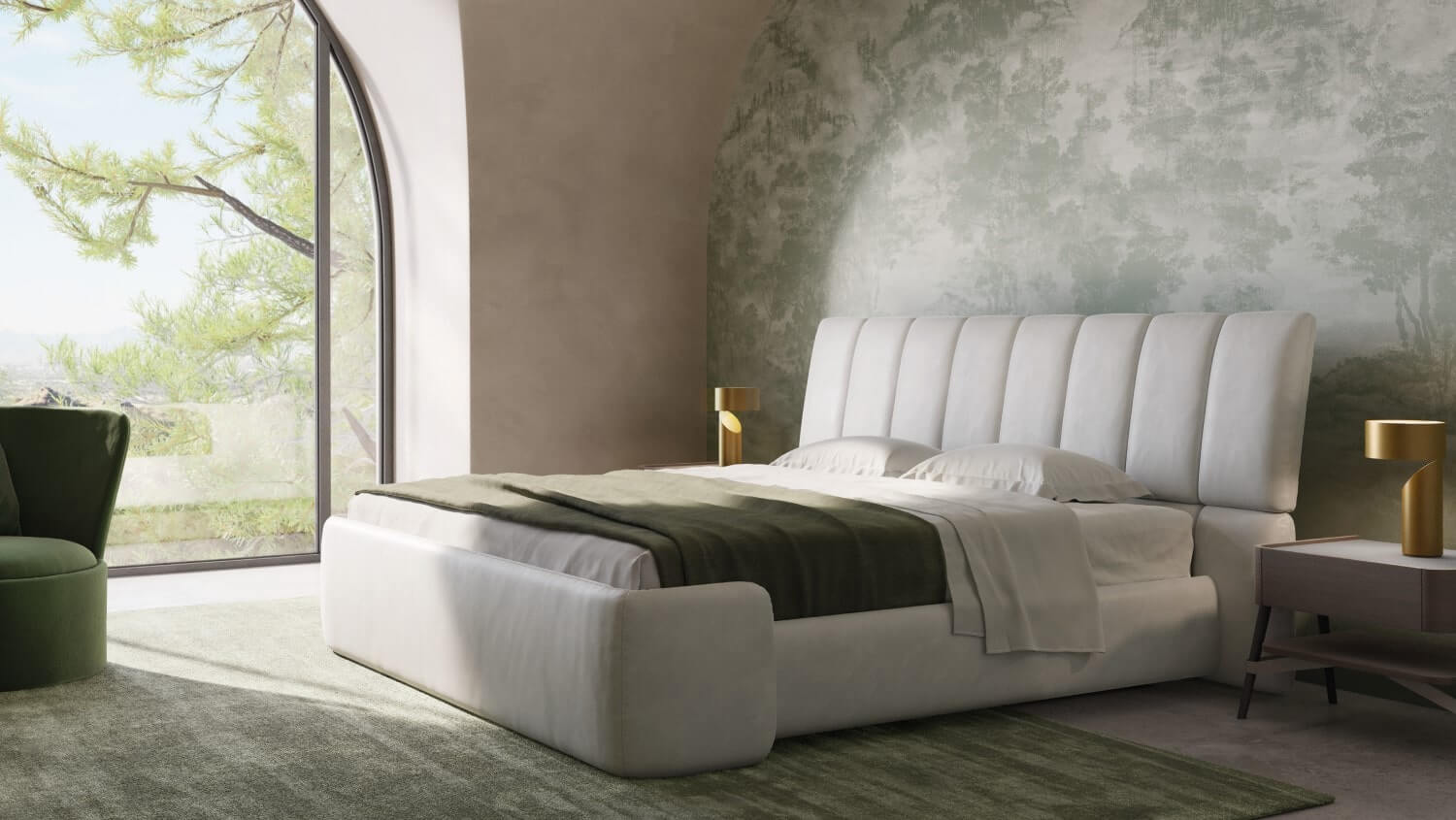Unique comfort, refined details and sumptuous materials brings harmony to the bedroom.