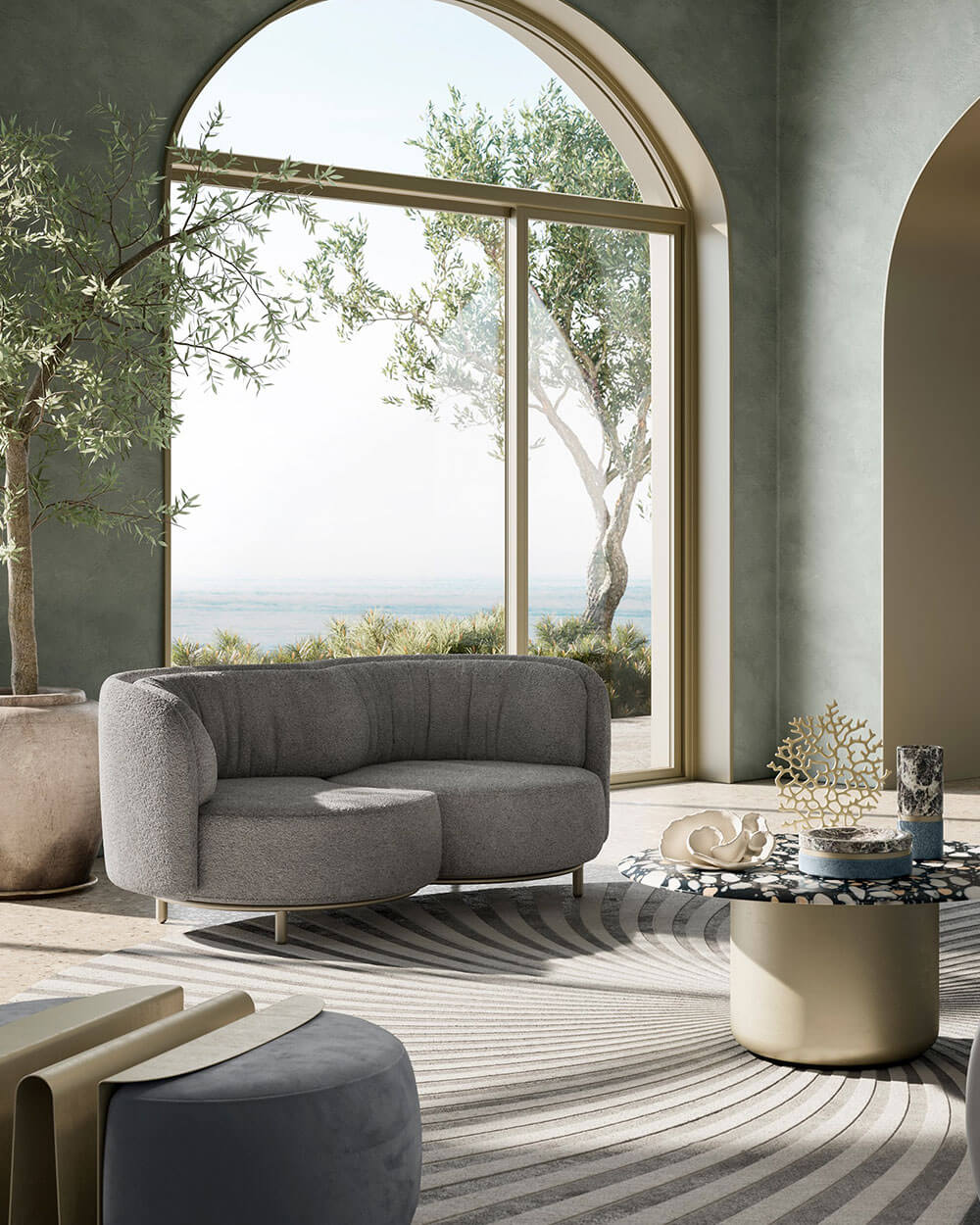 As the name suggests, the word ‘Deep’ is closely linked to water and its fluid nature, with voluptuous lines that are reminiscent of the ebb and flow of the tide. A sofa you can first lose yourself in and then find yourself in, lulled by the reassuring familiarity of the sea and the eternal beauty of Mediterranean nature inspiring both Natuzzi and Nika Zupanc.