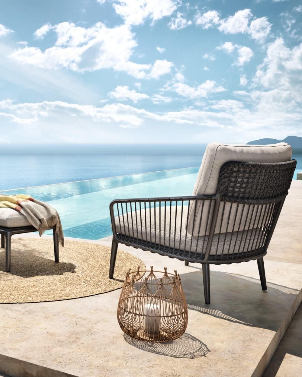 With the Rolf Benz Yoko armchair, you can put your feet up and forget about the world. This outdoor armchair has found its place, either as a standalone item, in a group of armchairs or with the sofa from the collection by its side. Its light aluminium frame makes it easy to move around and with its hand-crafted weaving detail, it stylishly blends in with any surroundings. A stool and optional comfortable side cushions help ensure that you can take a deep breath and relax in the open air.