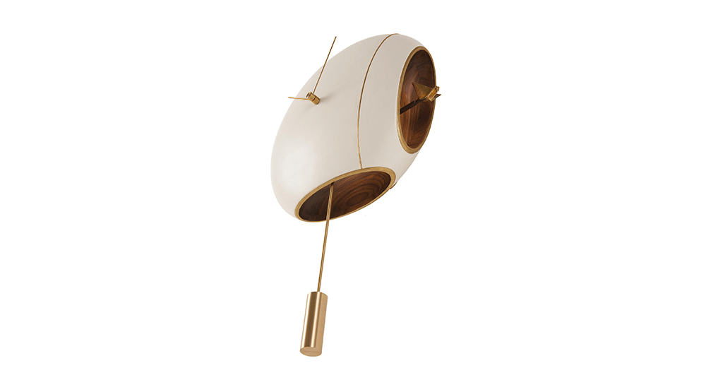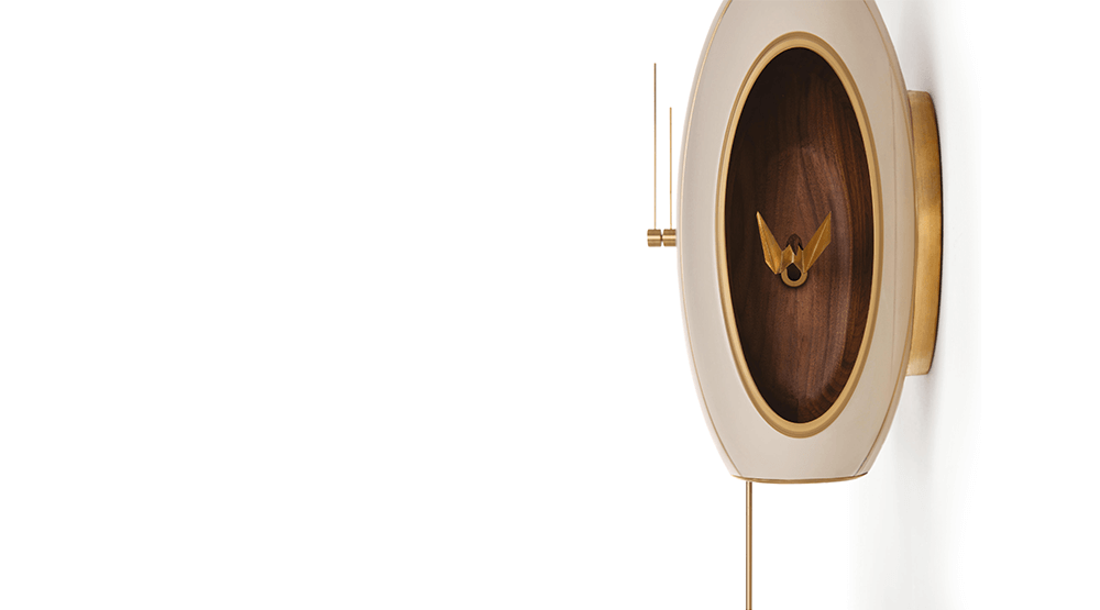 The classic sound that marks time is managed by a photocell that excludes it in the dark hours. It is possible to select silent mode. A battery powers the clock. The leather plus cover reveals a complex craftsmanship: the leather must be wetted several times to make it perfectly adhere to the wooden shell without any wrinkles. Craftsmanship and innovation meet: since the bird is slightly bigger and heavier and it comes out on one side, the research for a way to make the mechanism work perfectly led to the design of a longer and more durable mechanical arm.