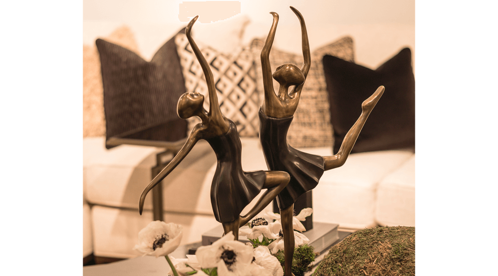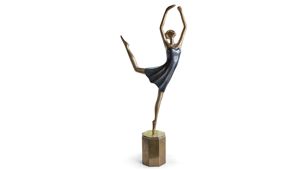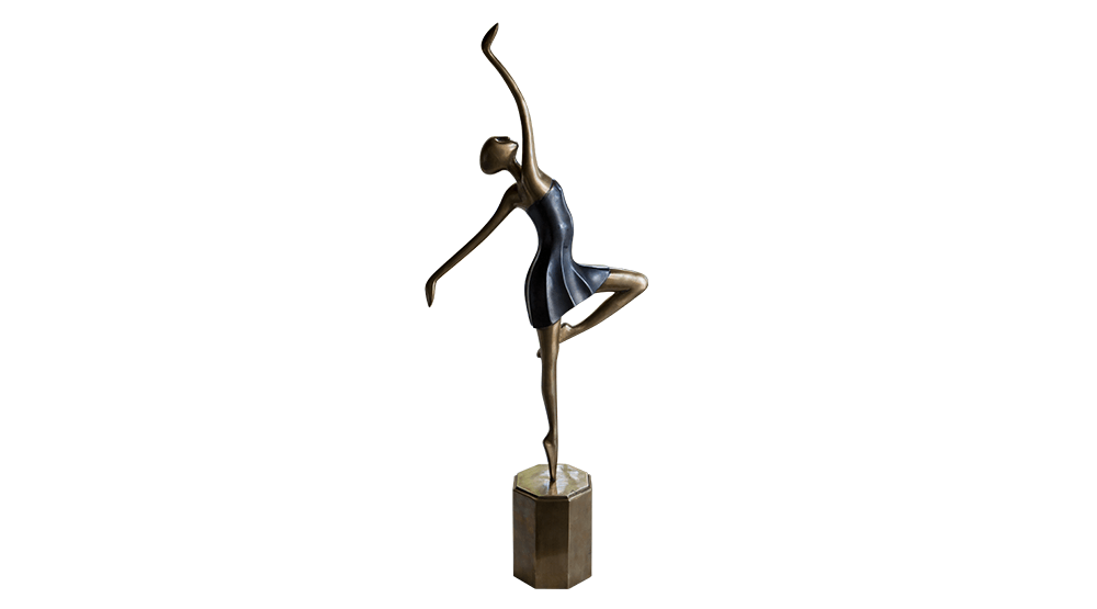 Captured in a classic ballet pose, this dancer is cast in brass miraculously ‘en pointe’ on an octagonal brass base plinth.