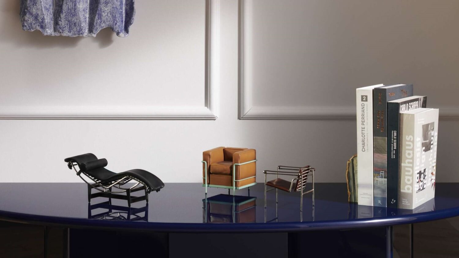 Cassina launches an exclusive range of miniature versions of some of the icons from the Collection Le Corbusier, Pierre Jeanneret, Charlotte Perriand like extraordinary designer accessories for interior decor: four chairs and a table in 1:6 scale, produced in the same colors, leathers and hides used on the original models.