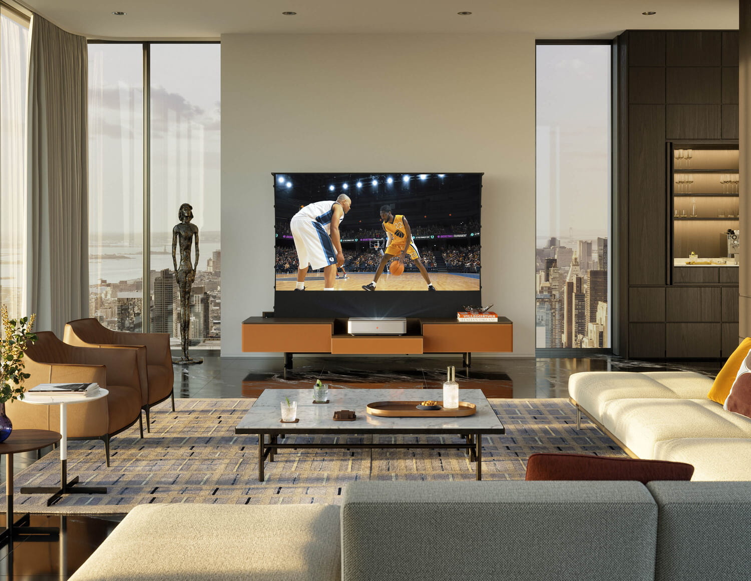 The products are available for purchase only separately: the Fidelio multimedia cabinet with an integrated screen is available at Poltrona Frau by Euro Creations at Thonglor 5, while the Leica Cine 1 100” smart laser TV is available in select countries around the world.