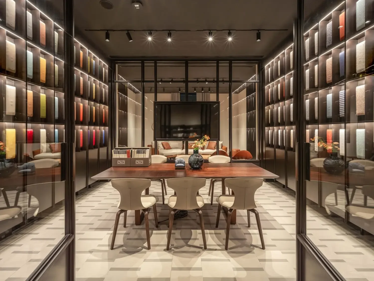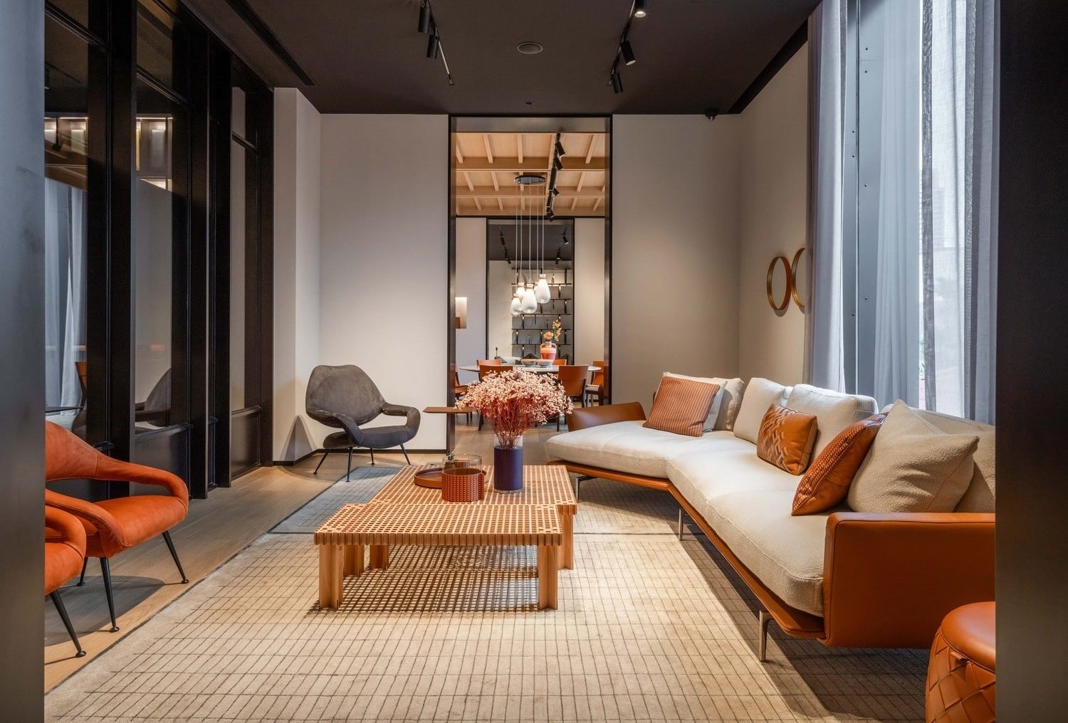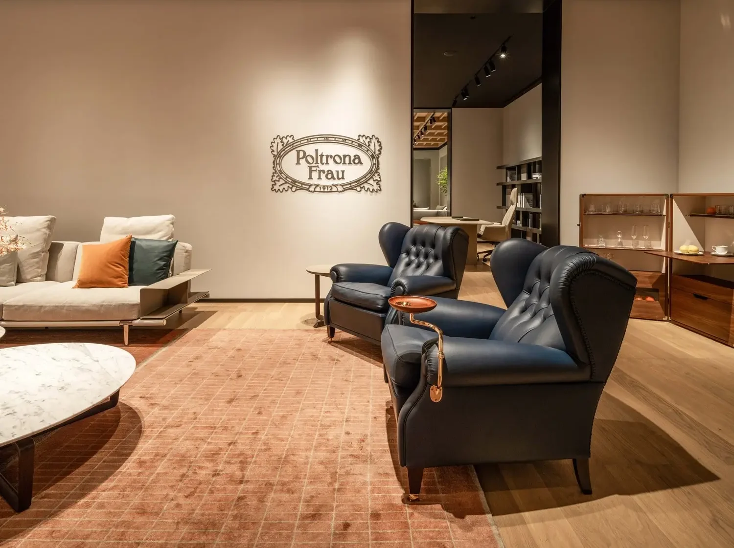 Every detail of the showroom reflects Poltrona Frau’s dedication to exceptional craftsmanship and timeless design. Visitors can discover exclusive collaborations with prestigious names such as Fornasetti, Acqua di Parma, and Loro Piana, alongside a curated selection of Ceccotti Collezioni’s distinctive woodworking masterpieces—where tradition meets modernity.