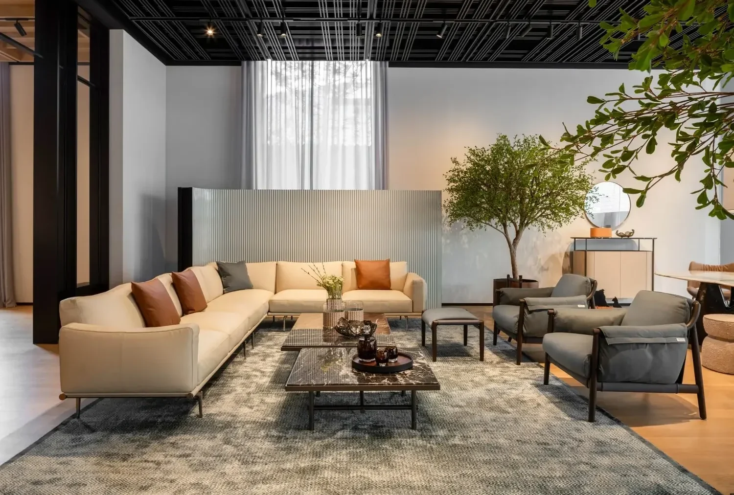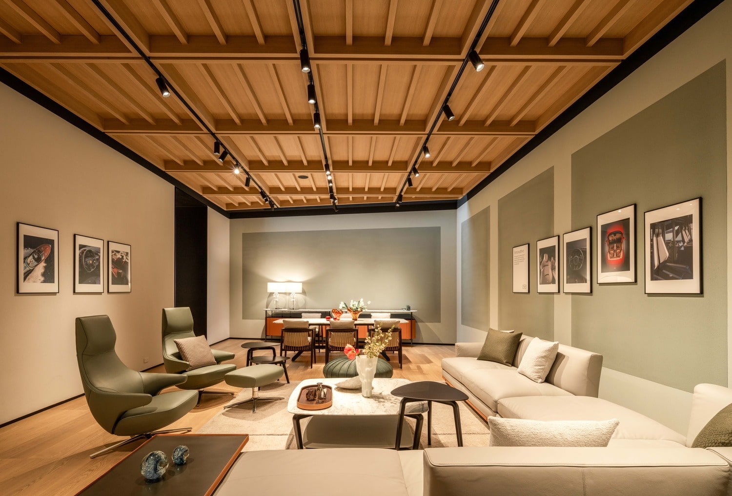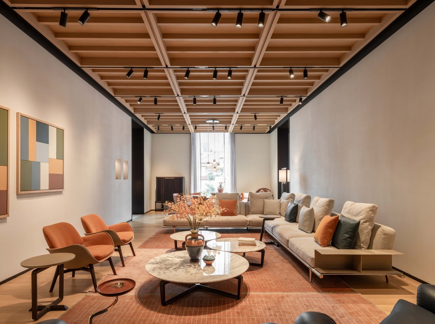Every detail of the showroom reflects Poltrona Frau’s dedication to exceptional craftsmanship and timeless design. Visitors can discover exclusive collaborations with prestigious names such as Fornasetti, Acqua di Parma, and Loro Piana, alongside a curated selection of Ceccotti Collezioni’s distinctive woodworking masterpieces—where tradition meets modernity.